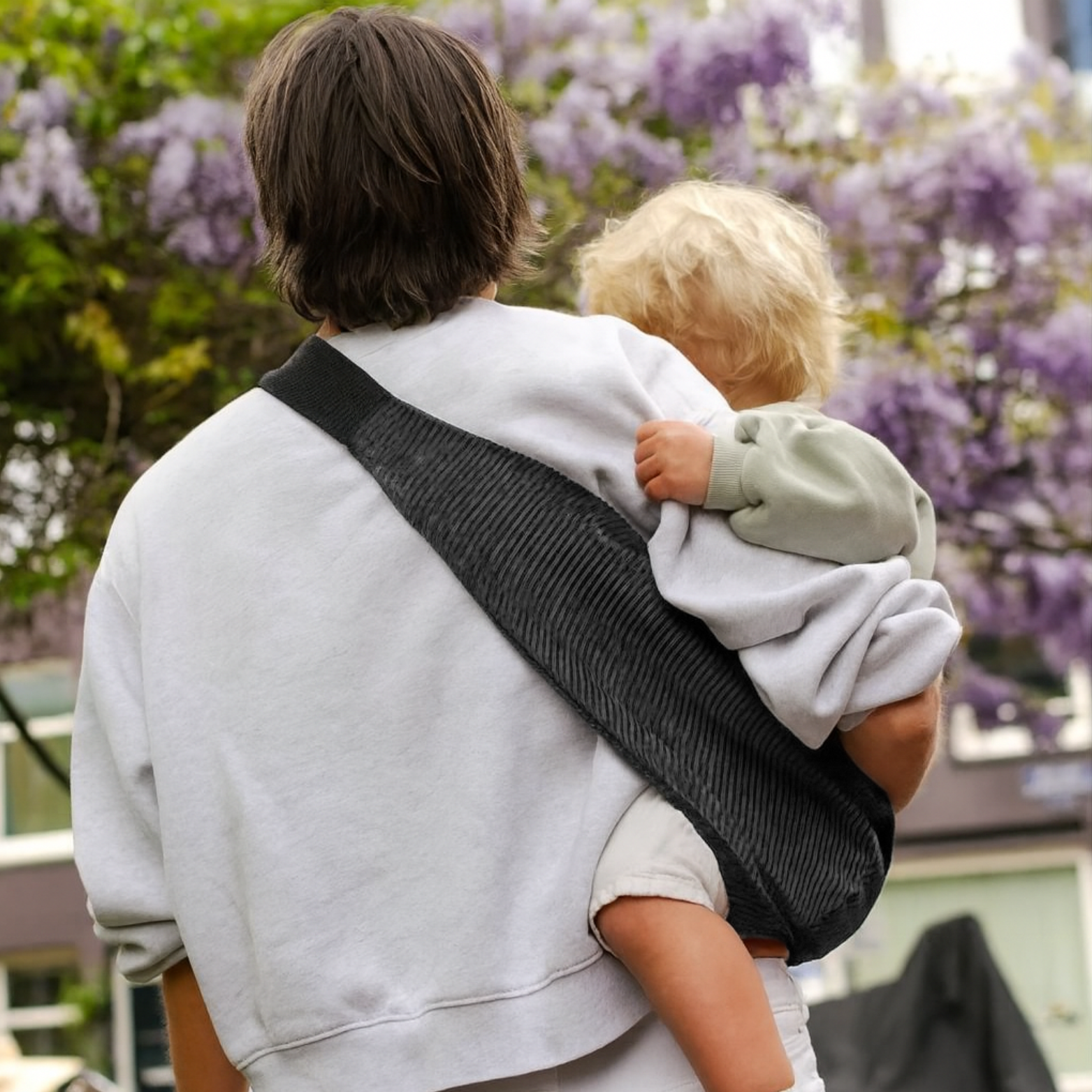 Avec son style épuré et contemporain, le porte-bébé hanche Orbite s'agence parfaitement avec vos tenues quotidiennes.